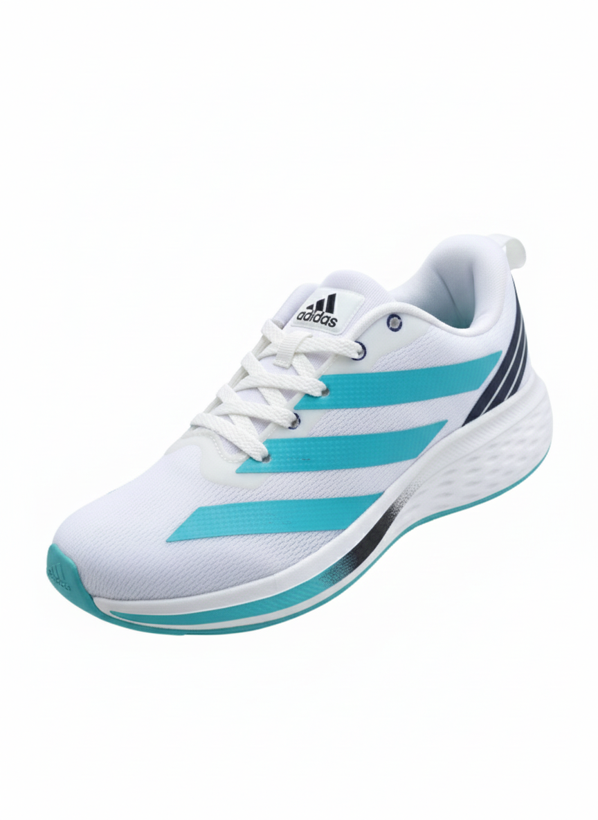 With a clean white base and stylish teal accents, these Adidas running shoes offer a modern sporty look that pairs well with track pants, joggers, or casual outfits. Perfect for men who want lightweight performance with everyday comfort.
