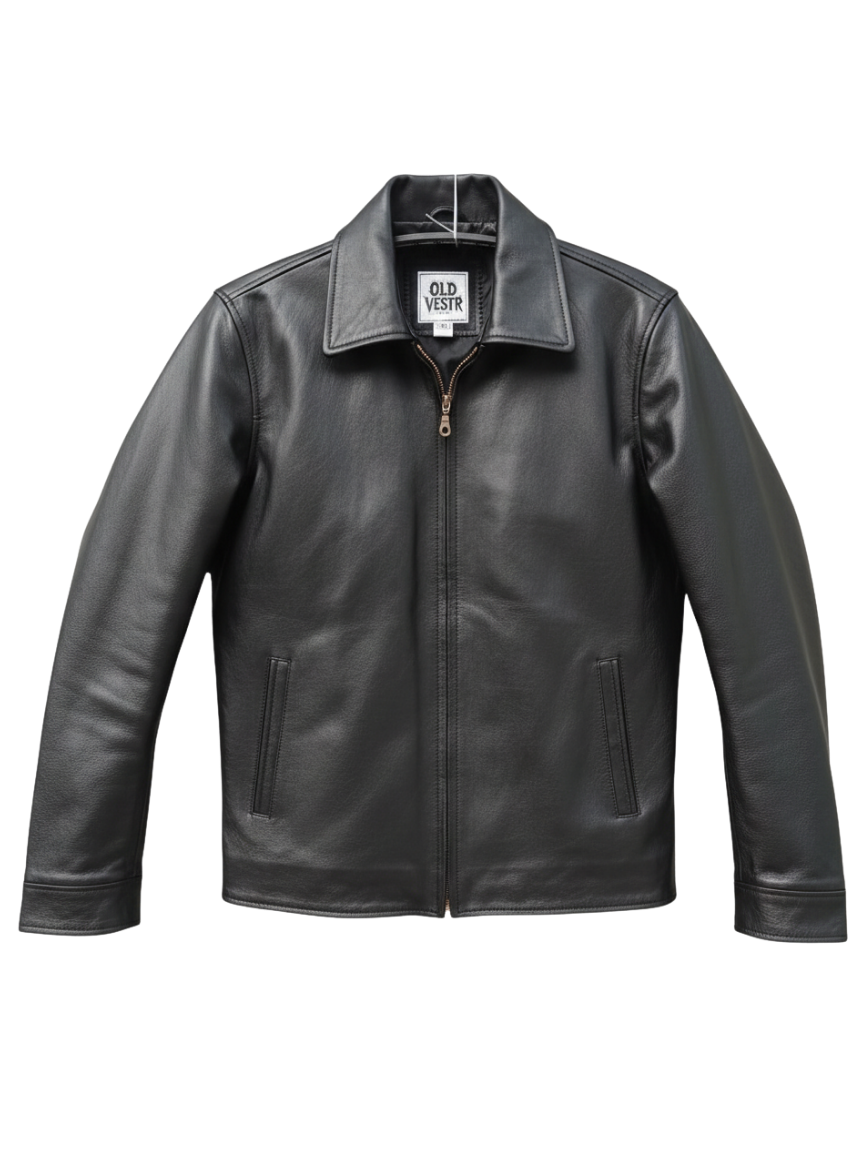 Men’s Black Classic Leather Zip-Up Jacket