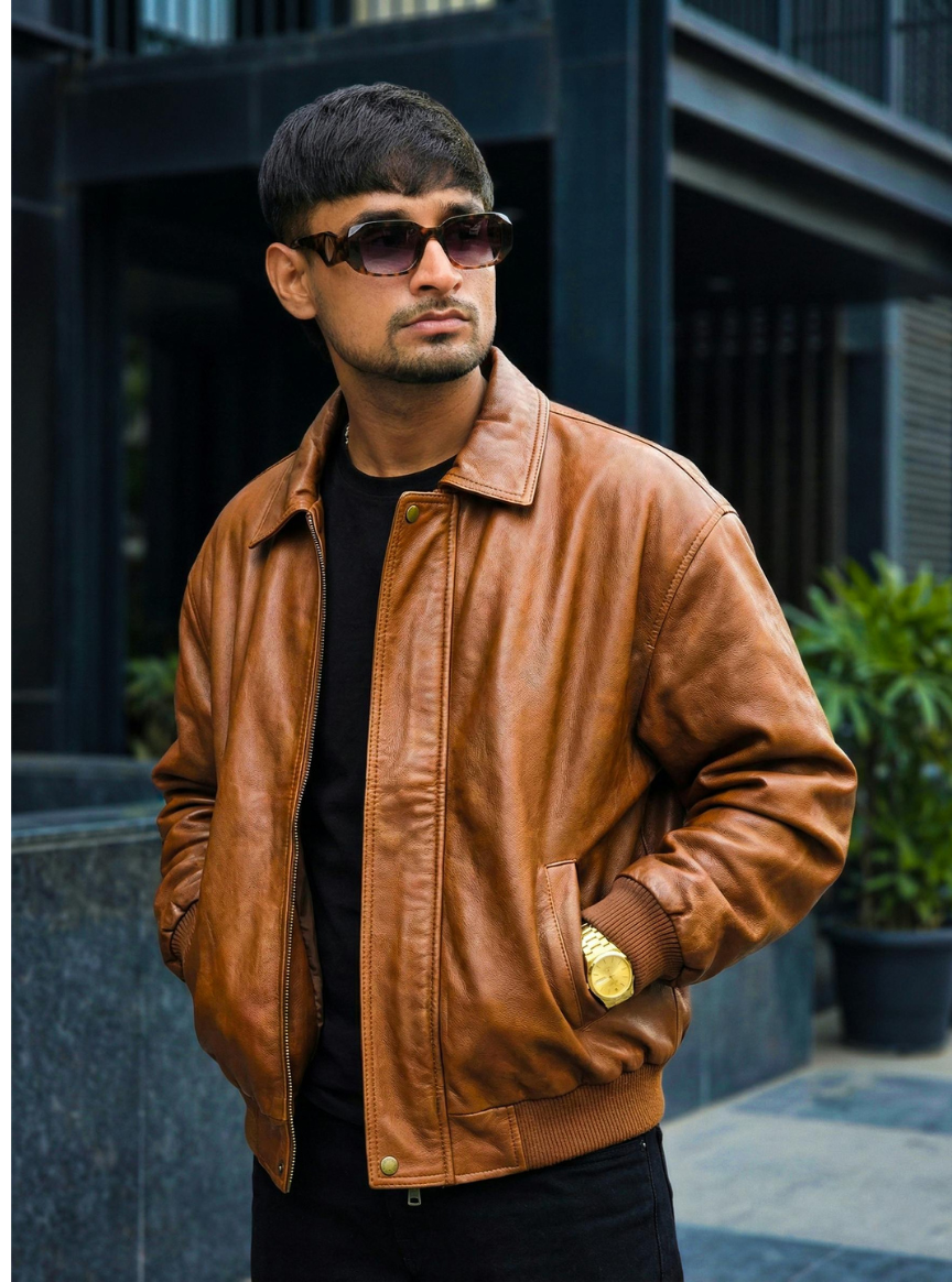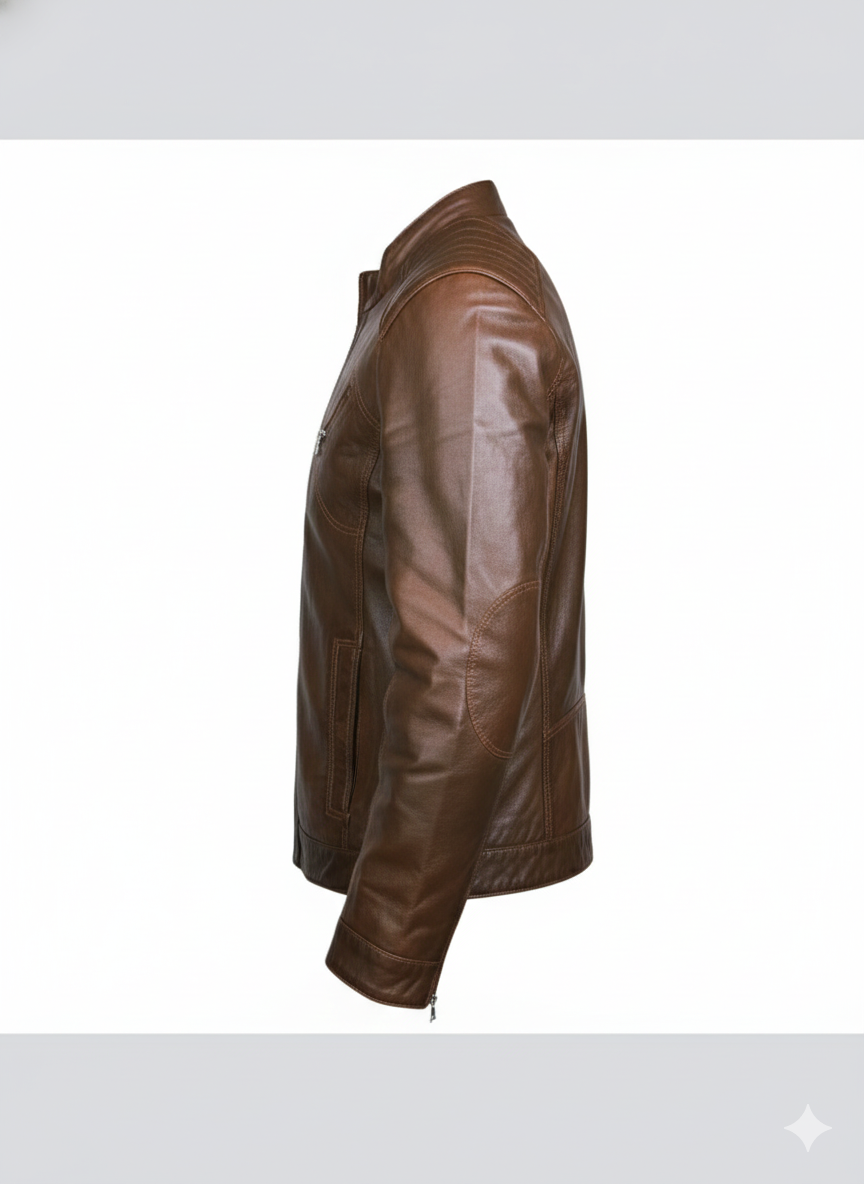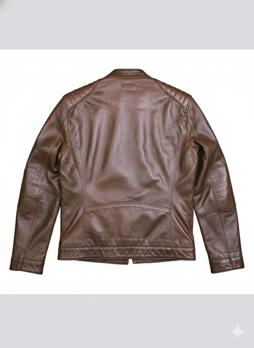 Upgrade your style with this Men’s Brown Classic Leather Biker Jacket, crafted for a bold and timeless look. Featuring quilted shoulder panels, a front zip closure, and a premium leather-look finish, this jacket offers the perfect balance of fashion and functionality. The comfortable inner lining provides warmth and ease of wear, while multiple zip pockets add practicality. Ideal for casual outings, bike rides, and evening wear, this jacket delivers a rugged yet refined appearance.