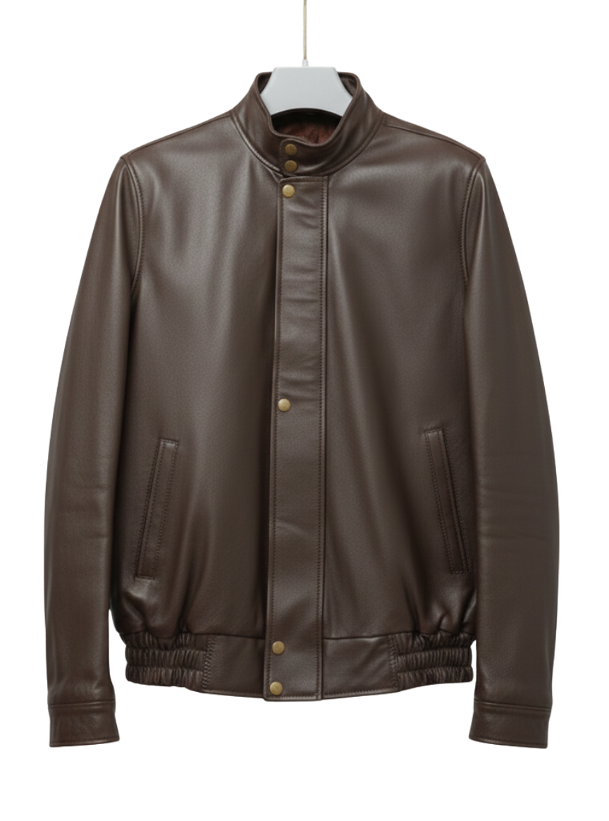 Stay stylish and warm with this Men’s Brown Classic Leather Bomber Jacket, crafted for durability, comfort, and everyday elegance. Designed with a premium leather-look finish, this jacket features a high-neck collar with snap buttons, a front button closure, and elasticated waist and cuffs for a snug fit. The soft inner lining provides warmth, making it perfect for winter wear, travel, and casual outings. Its timeless bomber style adds a rugged yet refined touch to your wardrobe.