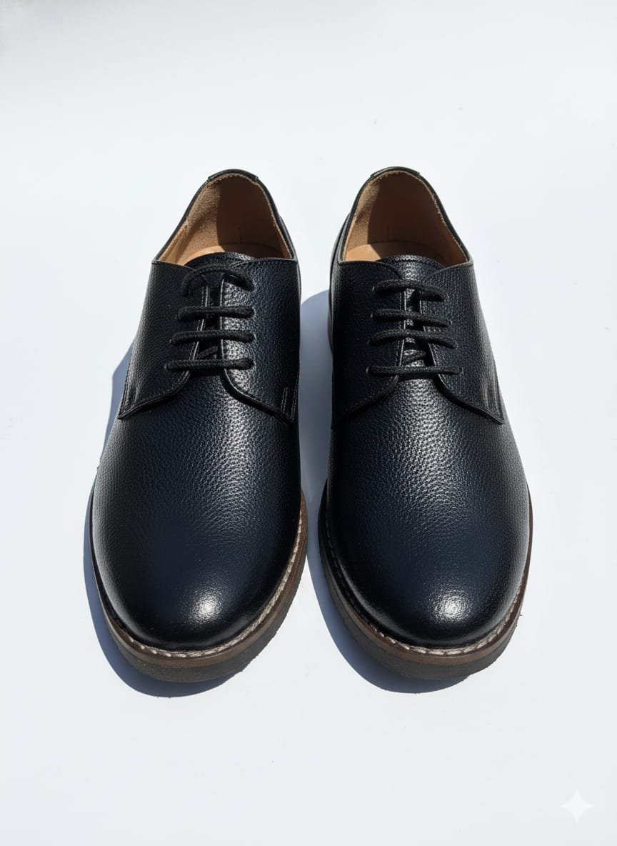Step into refined elegance with these premium black leather lace-up formal shoes. Crafted from genuine leather with a textured finish, they offer lasting comfort, durability, and a polished look for office and formal occasions.