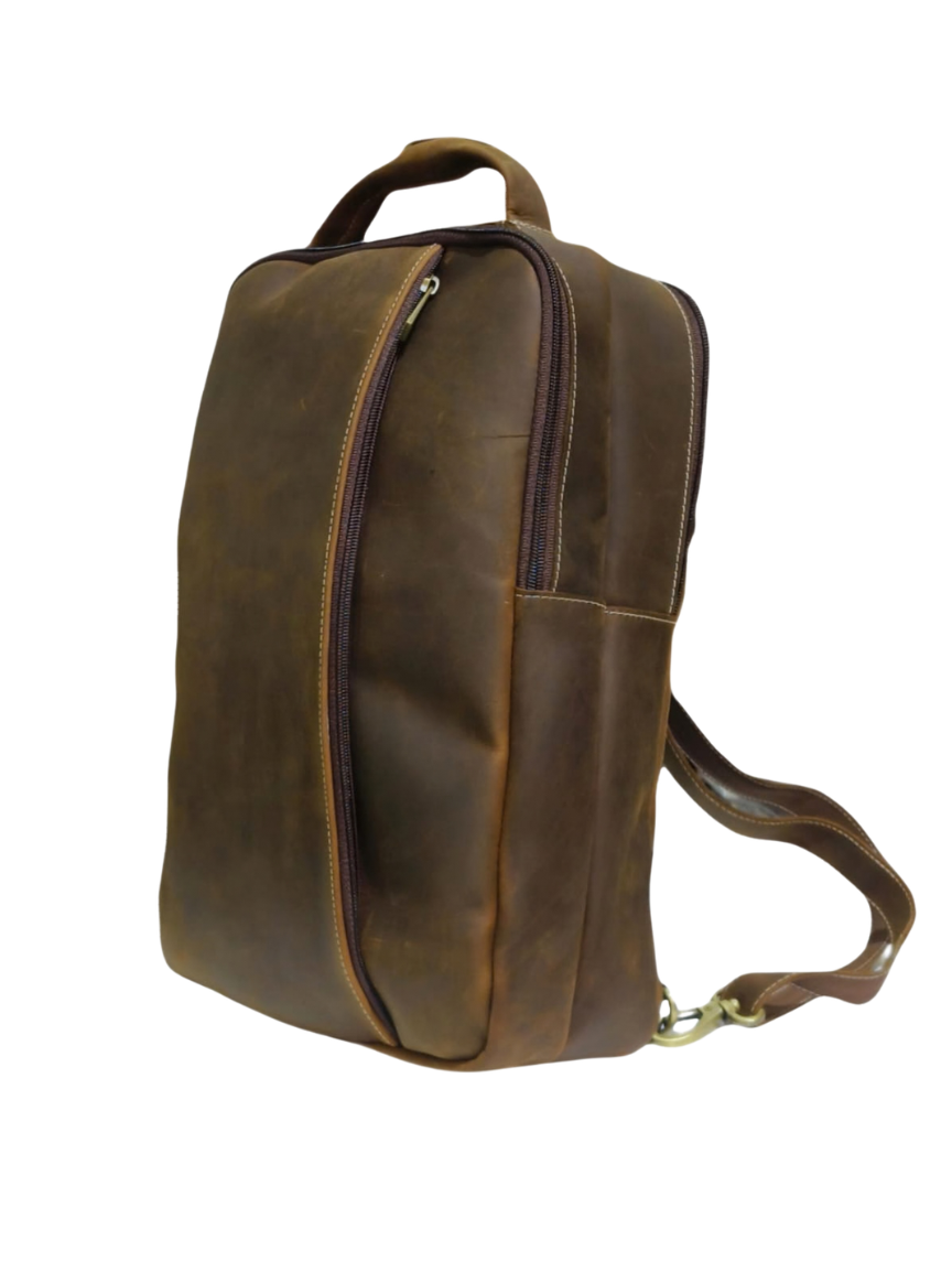 The sleek vertical design makes it comfortable to carry, while the strong zipper closures keep your belongings safe. Its durable leather construction ensures long-lasting use, making it ideal for travel, casual outings, and everyday use.